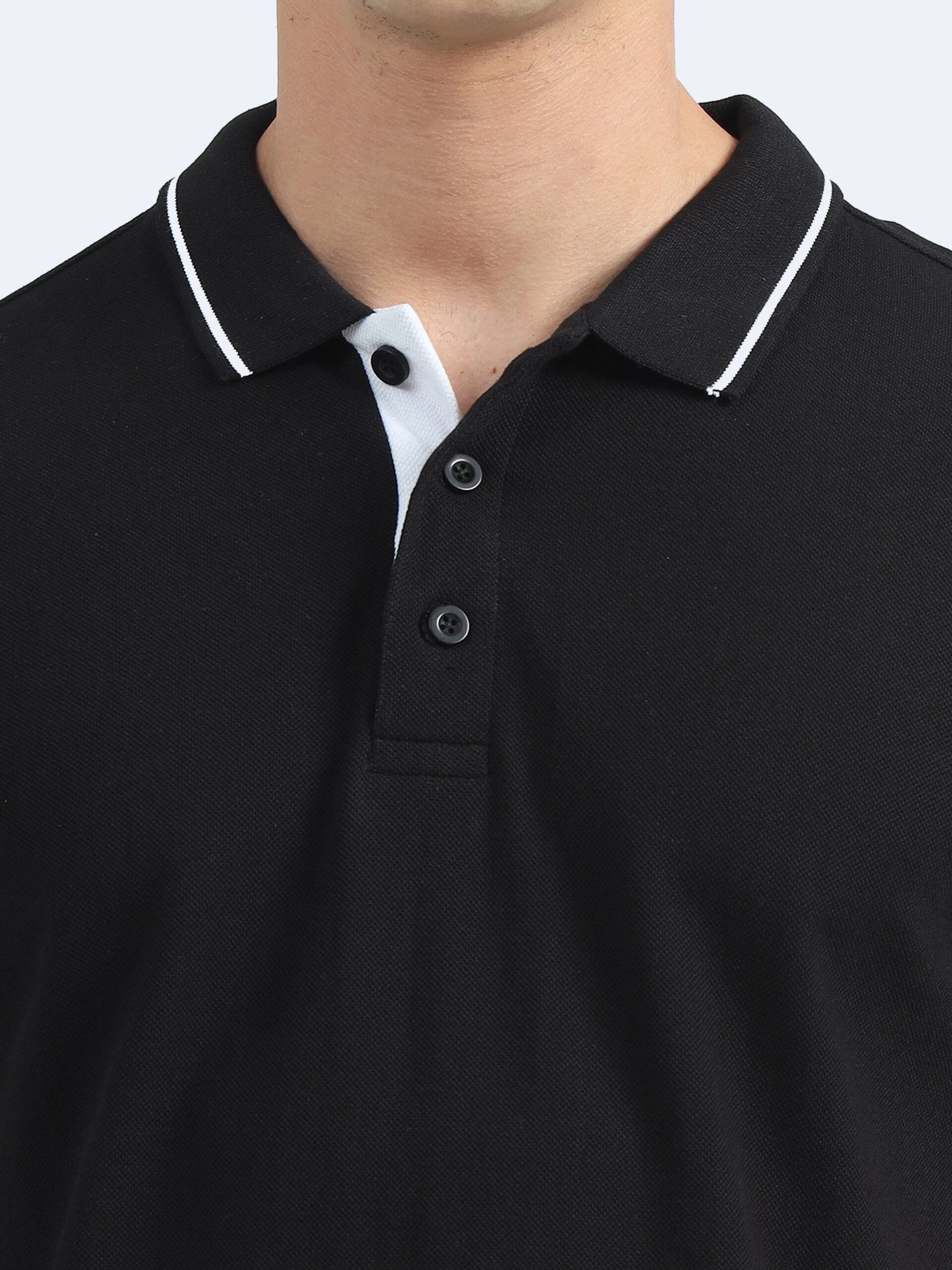Premium Bio Washed Cotton Polo T-Shirt – Black with white Tipping