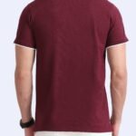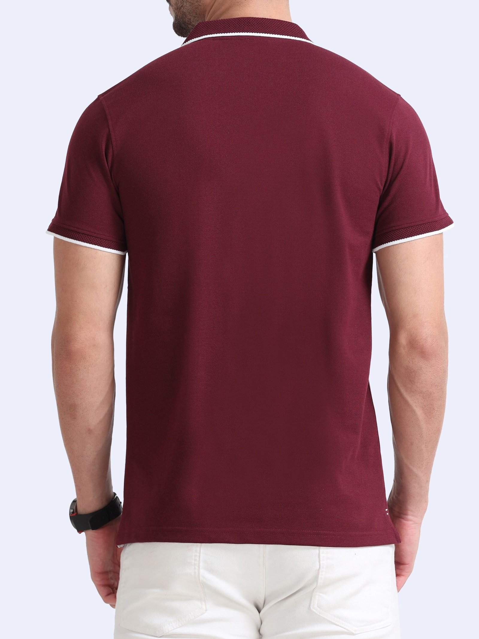 Premium Jacquard Coton Polo – Maroon with White Tipping