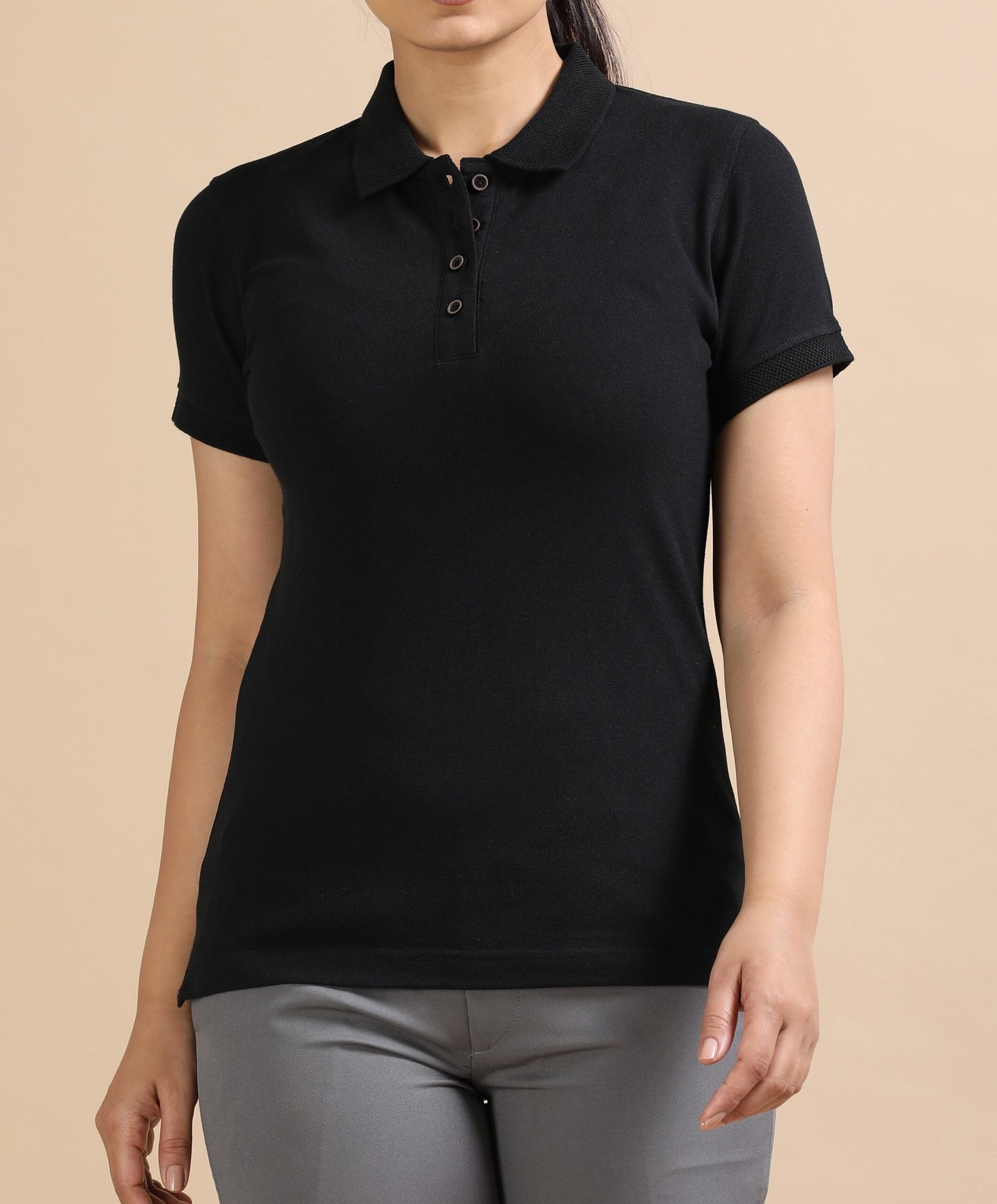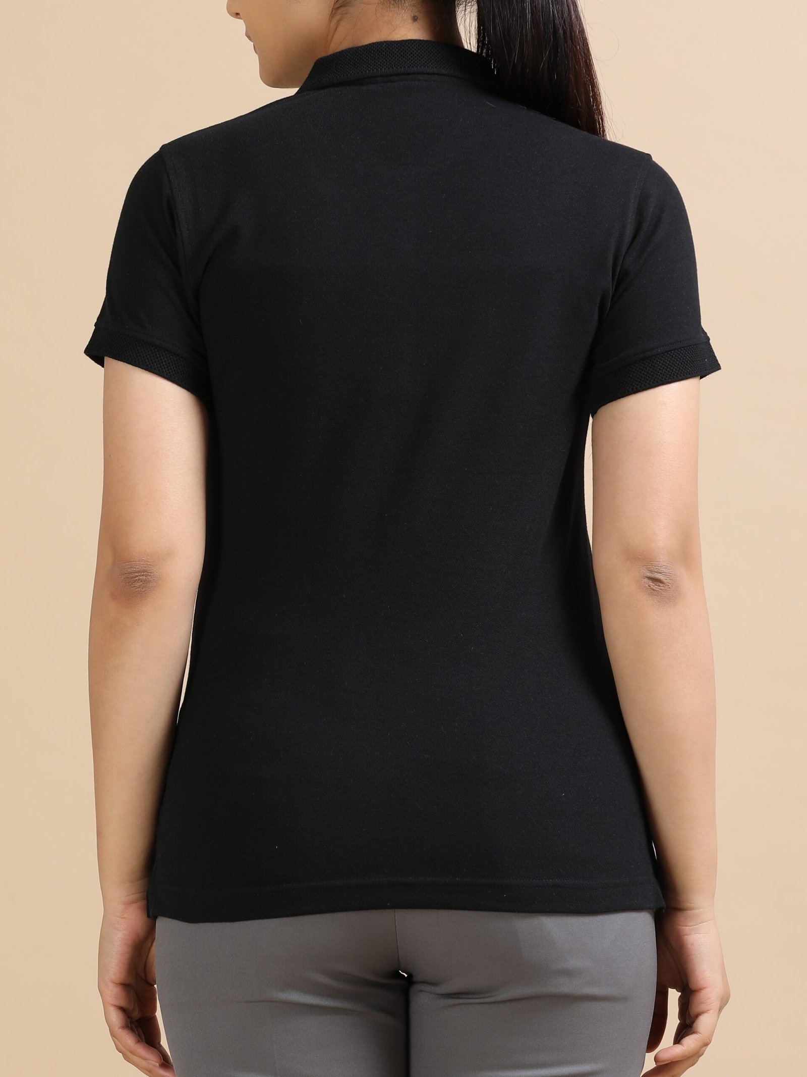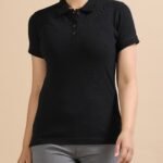 Premium Jacquard Women Cotton Polo – Classic Black
