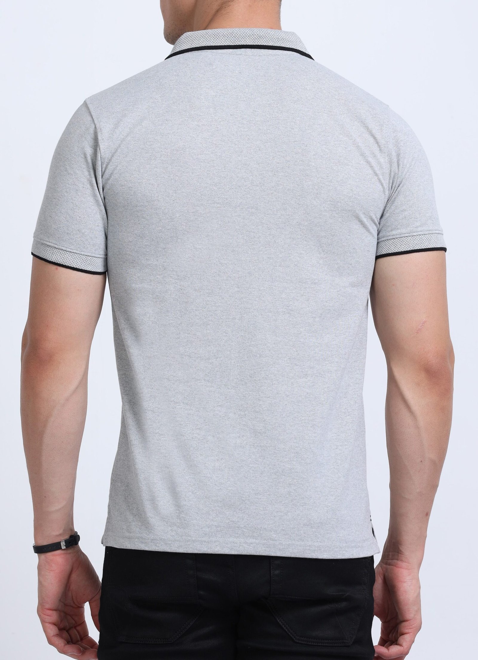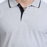 Premium Jacquard Coton Polo – Grey Melange with Black Tipping