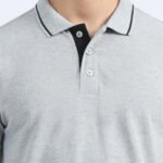Premium Bio Washed Cotton Polo T-Shirt – Grey Melange with Black Tipping