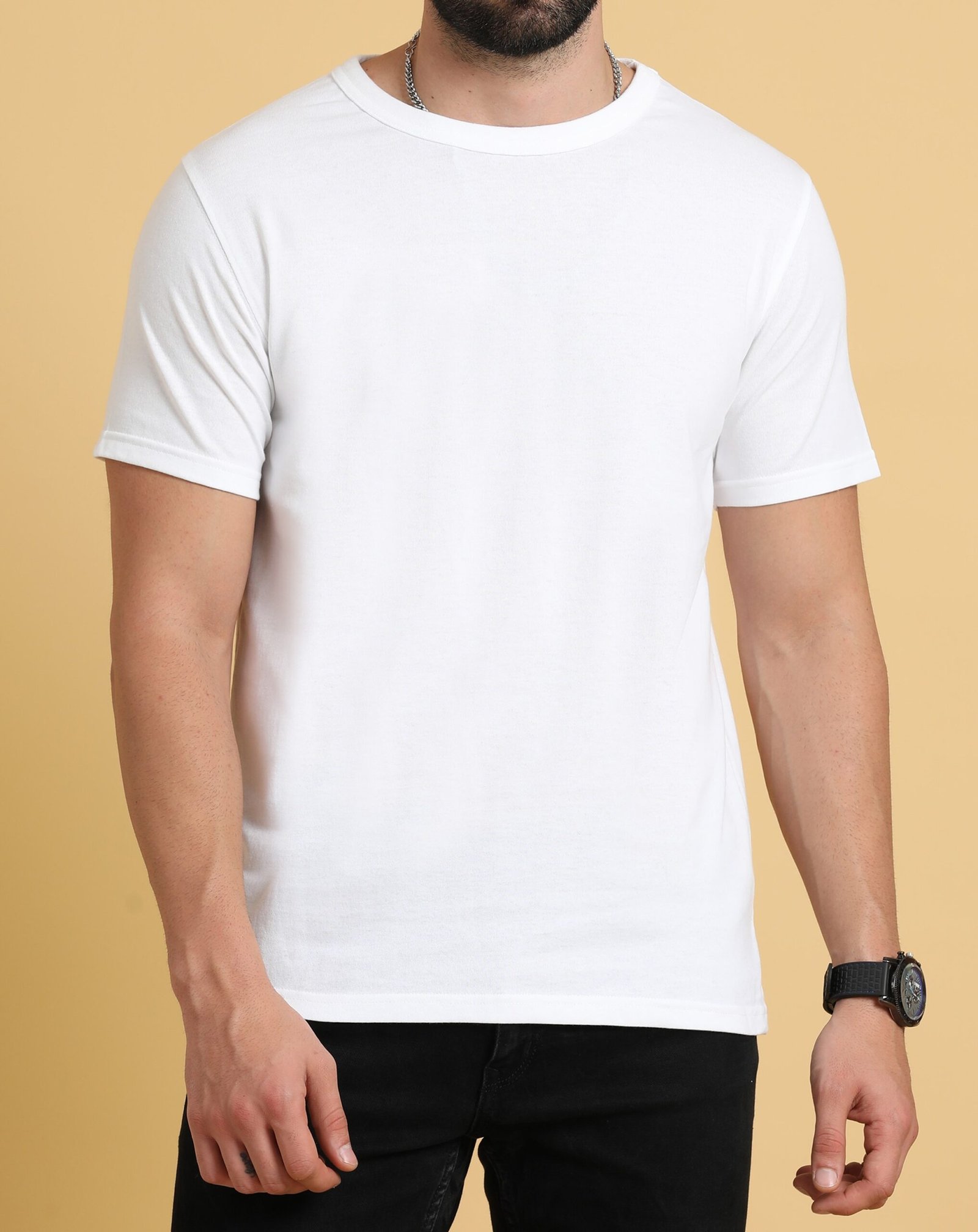 Men Cotton Round Neck T-Shirt – White