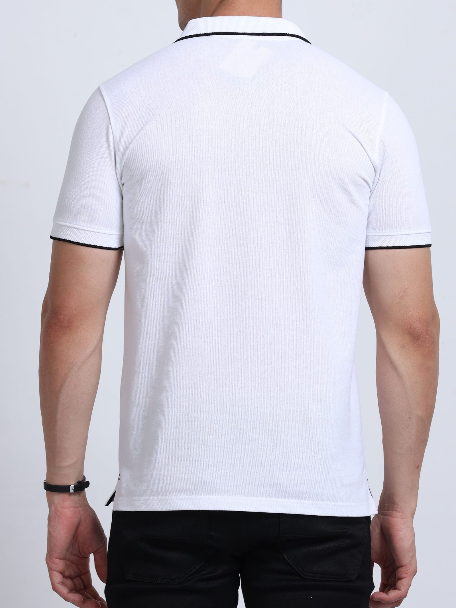 Premium Jacquard Coton Polo – White with Black Tipping