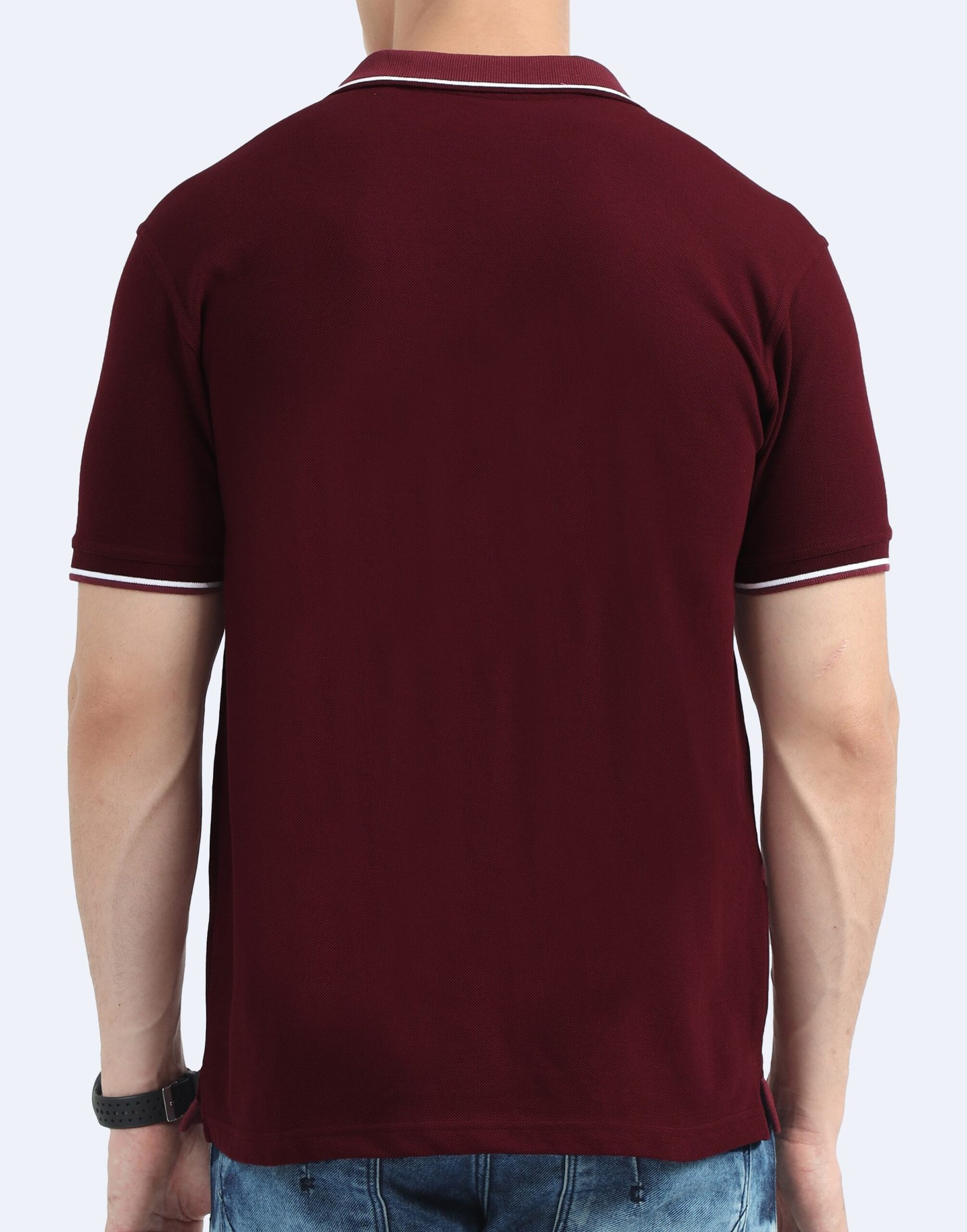 Premium Bio Washed Cotton Polo T-Shirt – Maroon with white Tipping