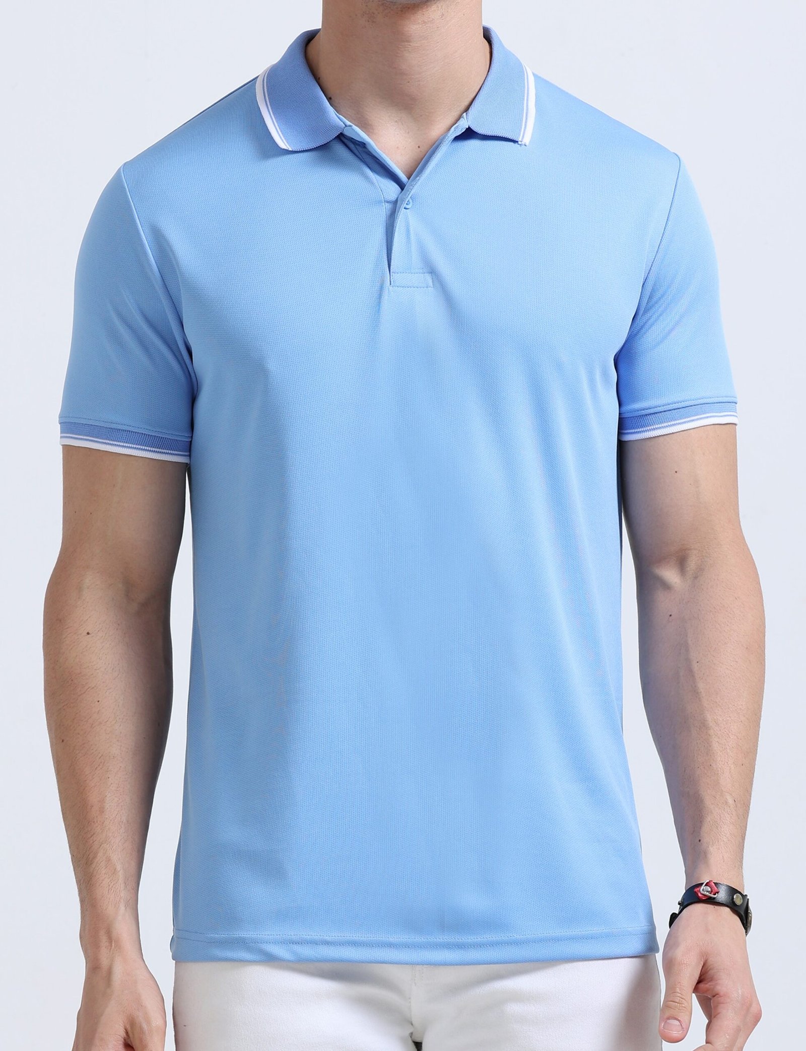 Premium Dotknit Polo T-Shirt – Sky Blue