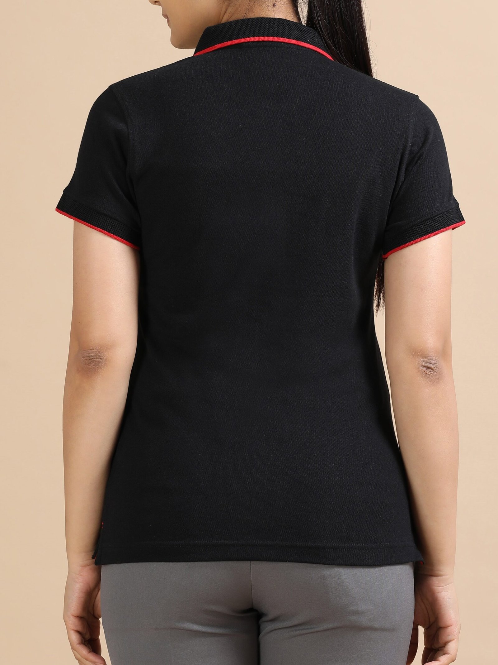 Premium Jacquard Women Cotton Polo – Black with red Tipping