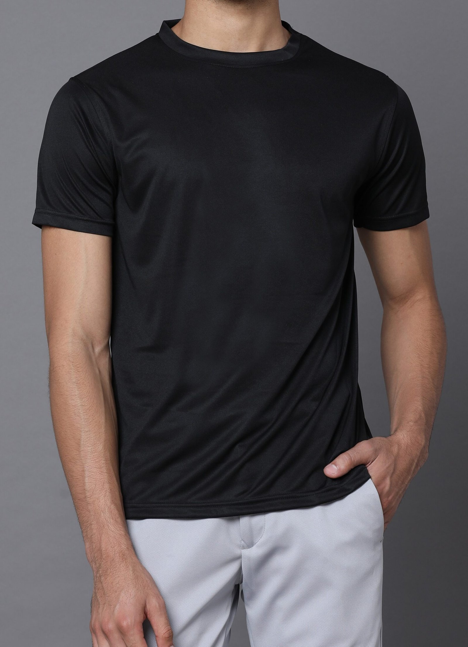 Polyester Round Neck T-Shirt- Classic Black
